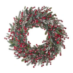 Raz 26″ Mixed Pine And Santa Belt Ball Christmas Wreath W4102346