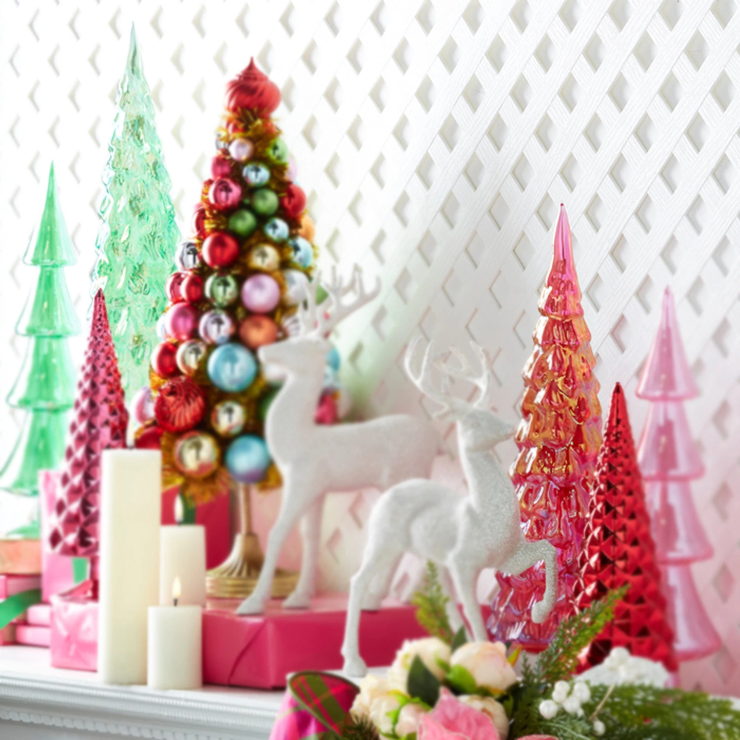 Make a statement in your Christmas decor this year with these beautiful trees! It features a tall, red or green glass tree with a stunning iridescent coating! Each sold individually. Made by Raz Imports. Made of glass. Dimensions: 5″ D X 18″ H. Item #: 4322934 or 4322933