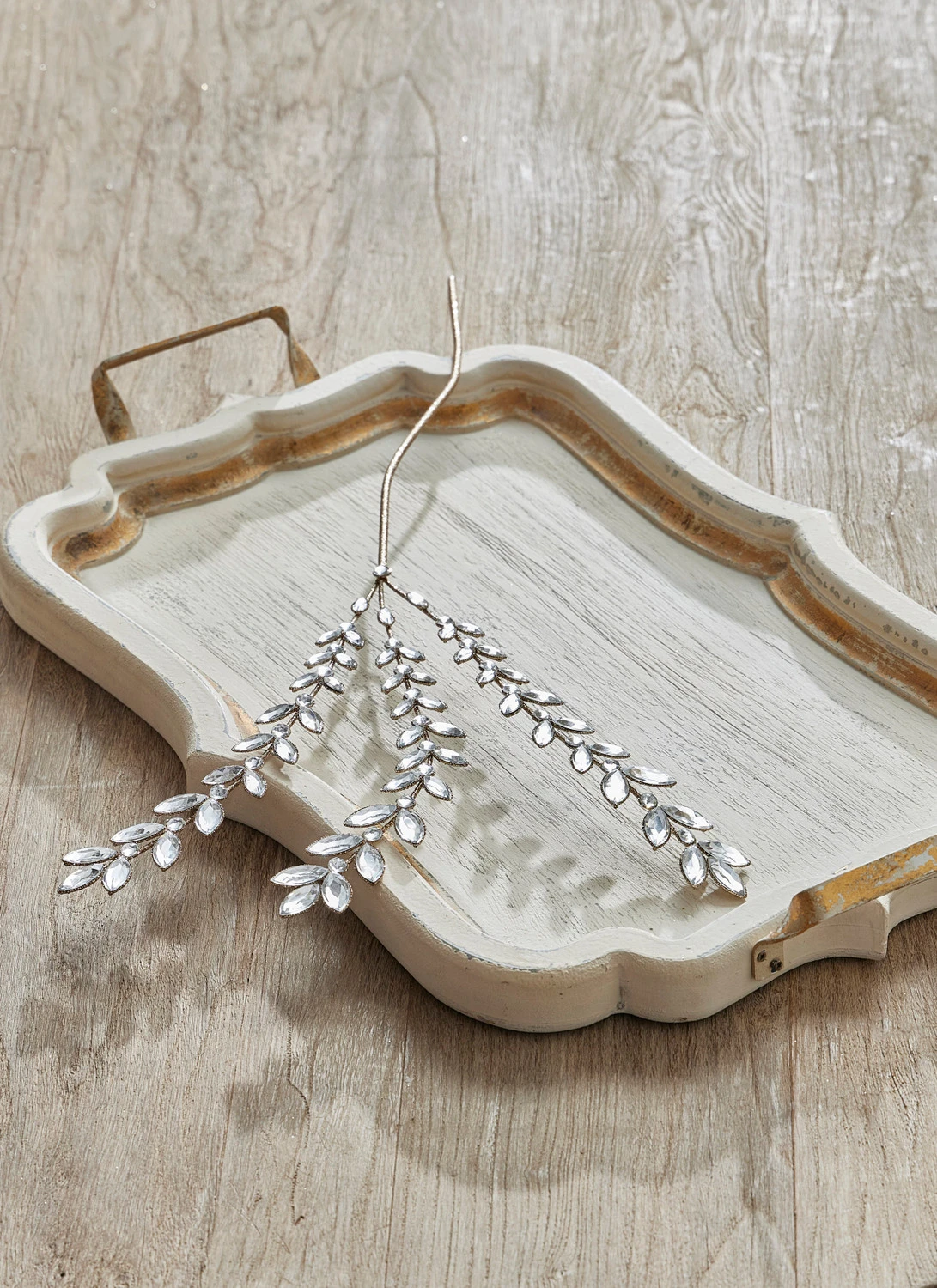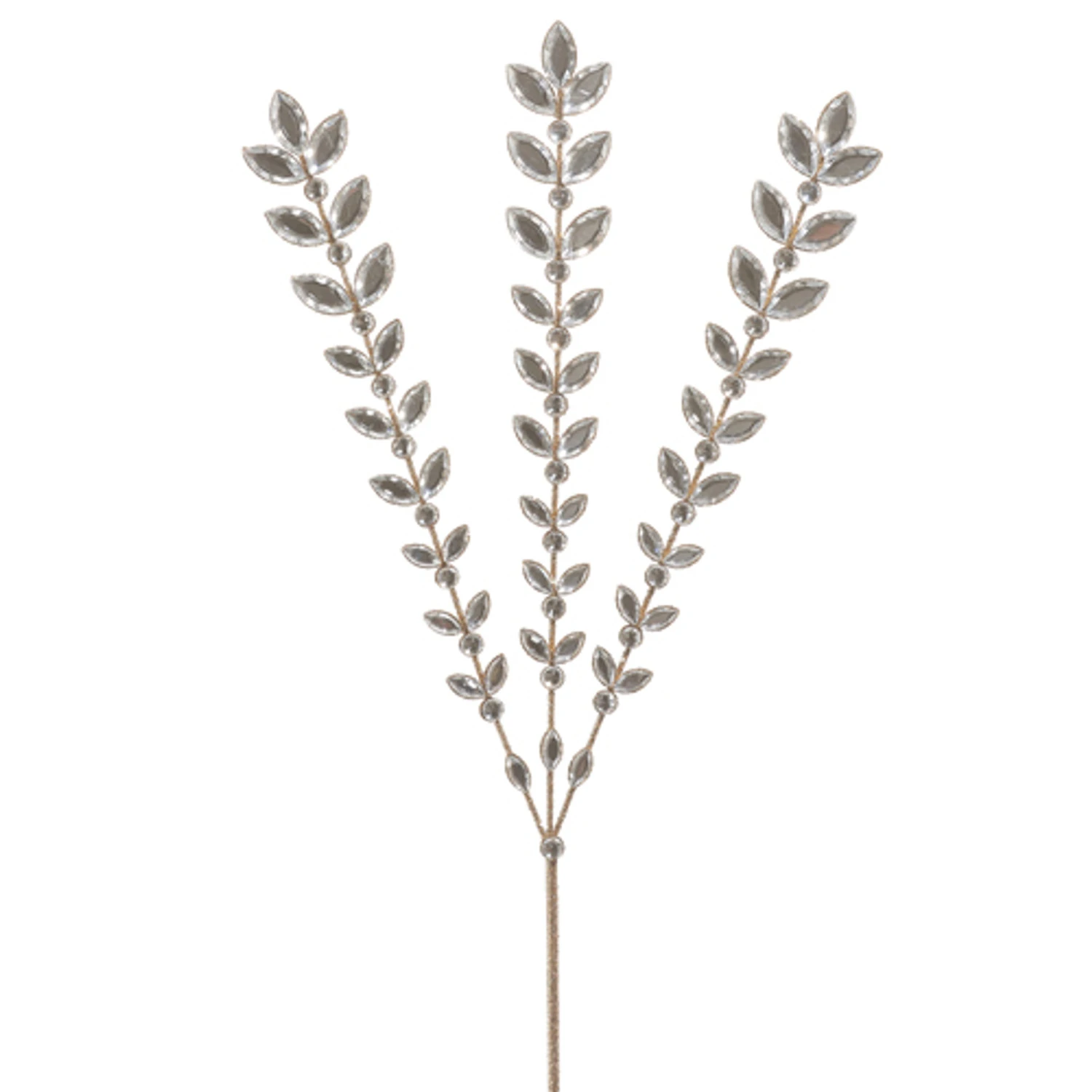 You can never have too much glitz! This spray feature three straight branches with a leaf-like design made of shimmering silver jewels! Made by Raz Imports. Made of plastic. Dimensions: 23.5″. Item #: F4313511