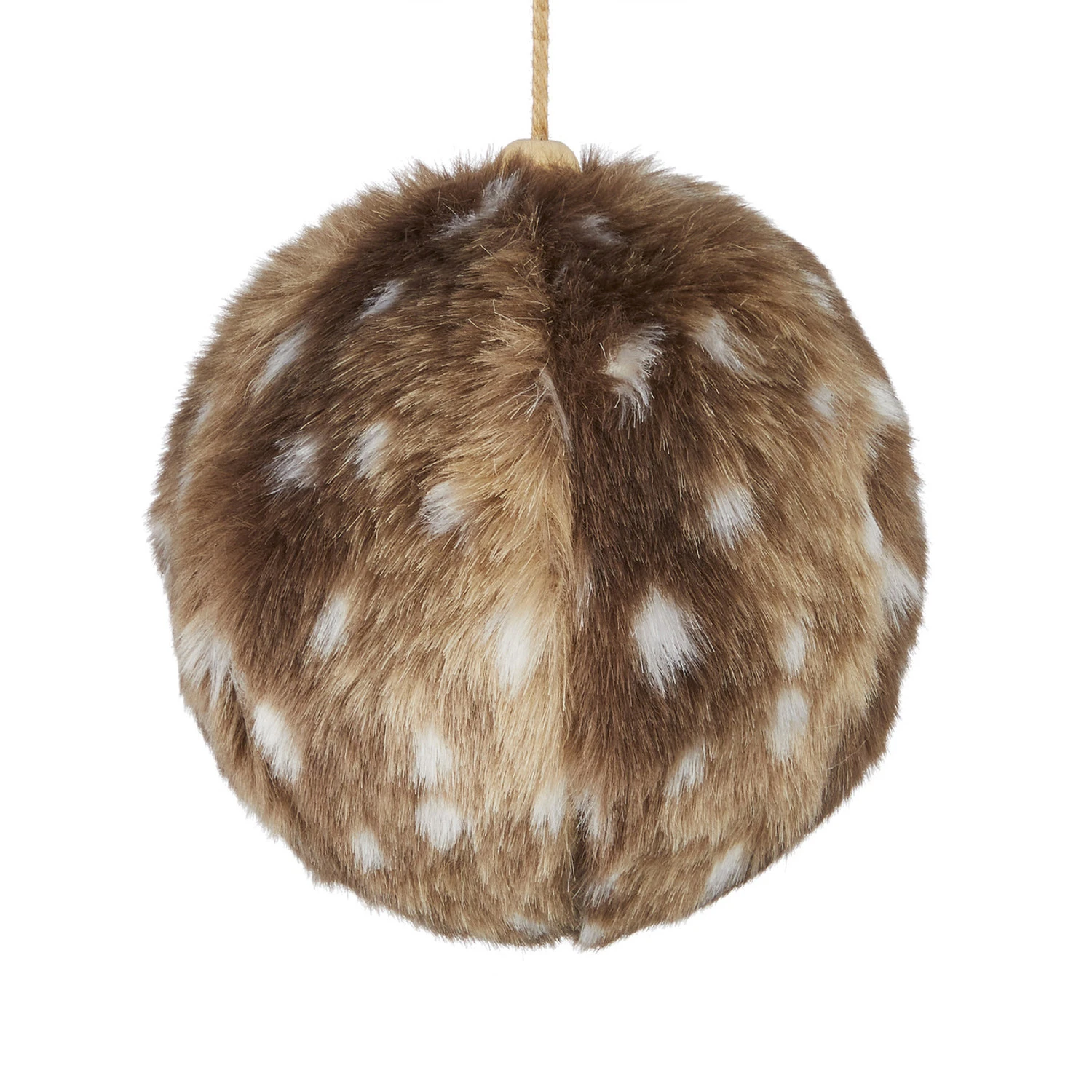 Add a soft texture to your Christmas tree this year with this pretty ornament! It features a brown fur ball with pretty white dots! Made by Raz Imports. Made of foam and faux fur. Dimensions: 5″. Item #: 4116374