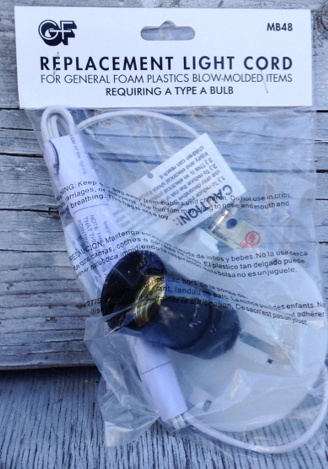 Have a blow mold with a damaged or missing light bulb harness? We carry this hard to find relplacement bulb corded harness for General Foam blow molds (can also work for Empire blow molds). Harness holds a regular sized 60 Watt bulb (bulb not included). Package includes bulb harness and one screw.