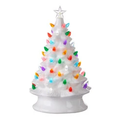 Raz 13″ Vintage Lighted White Ceramic Christmas Tree With Timer 4119131