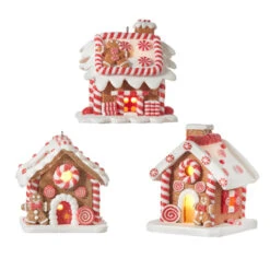 Raz Set Of 3 3.25″ Lighted Gingerbread House Christmas Ornament 4115522