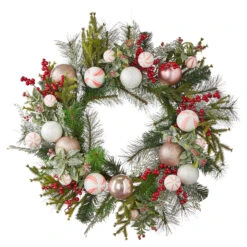 Raz 24″ Mixed Peppermint Ball Ornament Christmas Wreath W4102368