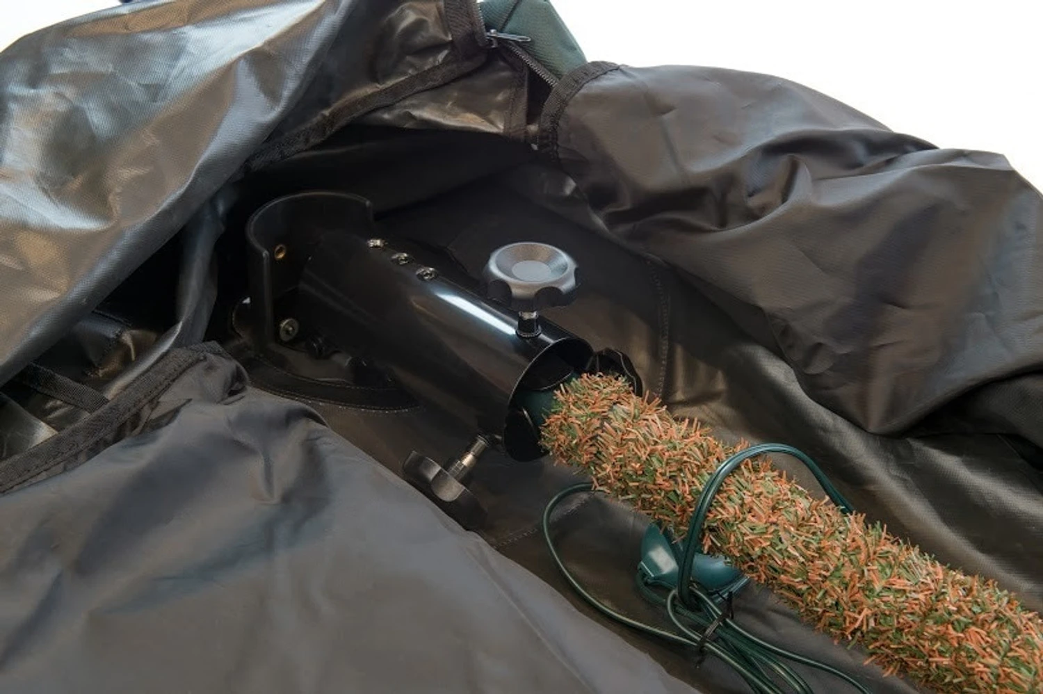 This clever Treekeeper stand is so much more than just a stand for your artificial tree, it is a storage unit with a duffel that compresses to hide under your tree skirt, no one will even know it is there. The stand easily tilts the tree into the bag while staying connected to the stand. Then when the holidays are over, simply take off the tree skirt and pull the duffel up around the tree, zip it up and roll it into storage. If you have an artificial tree you want to store dust free and crush-free, you need this Christmas storage duffle. Made by Treekeeper. Made of polyester fabric. Dimensions 58″ x 23″ 27″ Hold up to a 9′ Christmas tree. One year warranty against manufacturer’s defects. Item # TK-10709-RS.